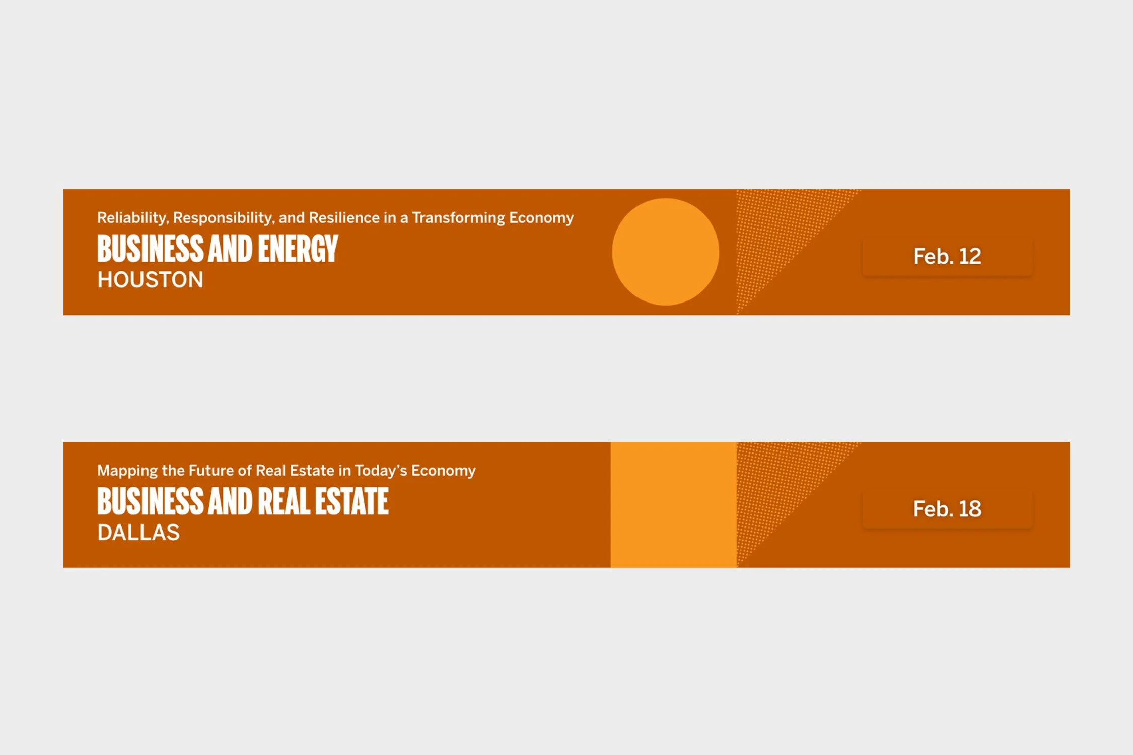 For the Texas McCombs School of Business, I developed a flexible visual system for the Business Outlook Series — a multi-city event spanning Dallas and Houston — designed to scale across physical, digital, and social environments while maintaining clarity and consistency.